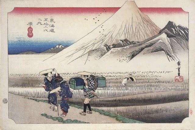 Artist: Utagawa Hiroshige - Title: Travellers Passing Mount Fuji - Medium: Fine Art Giclee on Canvas - Image Size: Approximately 13.25 inches x 20 inches - Unframed on Unstretched Canvas - Biography: (1797 - 12 October 1858) Hiroshige 's print s convey the beauty of Japan and provide insight into the everyday life of its citizens during the Edo period. The appeal of his tender, lyrical landscapes was not restricted to the Japanese audience.Hiroshige 's work had a profound influence on the Impressionists and Post-Impressionists of Europe: Toulouse-Lautrec was fascinated withHiroshige 's daring diagonal compositions and inventive use of perspective, while Van Gogh literally copied two ofHiroshig's prints from the famous series, 100 Famous Views of Edo in oil paint. - The borders may not be even inHiroshig's images. Please refer to the image.