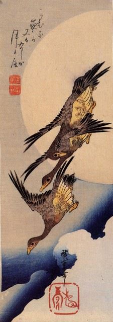 Artist: Utagawa Hiroshige - Title: Wild Geese Flight in Front of the Moon - Medium: Fine Art Giclee on Canvas - Image Size: Approximately 32 inches x 11.25 inches - Unframed on Unstretched Canvas - Biography: (1797 - 12 October 1858) Hiroshige 's print s convey the beauty of Japan and provide insight into the everyday life of its citizens during the Edo period. The appeal of his tender, lyrical landscapes was not restricted to the Japanese audience.Hiroshige 's work had a profound influence on the Impressionists and Post-Impressionists of Europe: Toulouse-Lautrec was fascinated withHiroshige 's daring diagonal compositions and inventive use of perspective, while Van Gogh literally copied two ofHiroshig's prints from the famous series, 100 Famous Views of Edo in oil paint. - The borders may not be even inHiroshig's images. Please refer to the image.