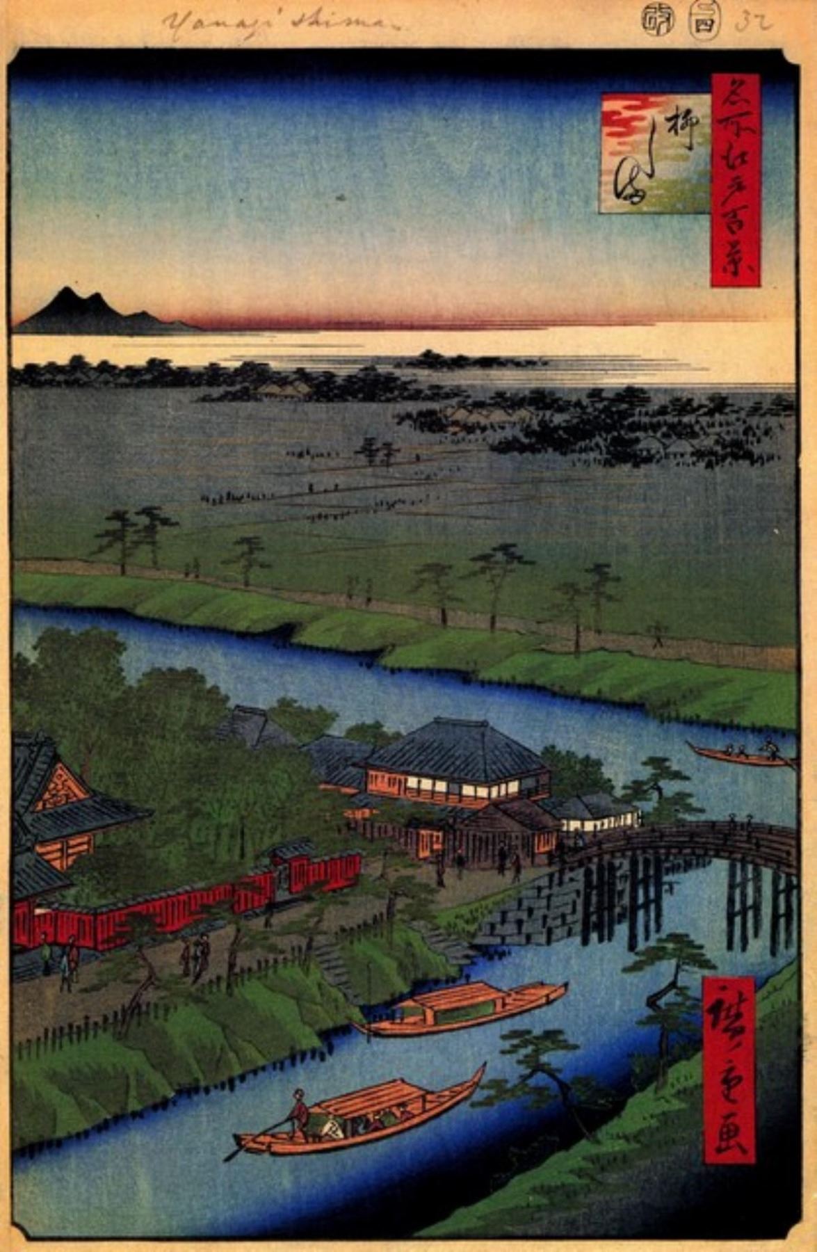 Artist: Utagawa Hiroshige - Title: Yanagishima - Medium: Fine Art Giclee on Canvas - Image Size: Approximately 20 inches x 13 inches - Unframed on Unstretched Canvas - Biography: (1797 - 12 October 1858) Hiroshige 's prints convey the beauty of Japan and provide insight into the everyday life of its citizens during the Edo period. The appeal of his tender, lyrical landscapes was not restricted to the Japanese audience.Hiroshige 's work had a profound influence on the Impressionists and Post-Impressionists of Europe: Toulouse-Lautrec was fascinated withHiroshige 's daring diagonal compositions and inventive use of perspective, while Van Gogh literally copied two ofHiroshig's prints from the famous series, 100 Famous Views of Edo in oil paint. - The borders may not be even inHiroshig's images. Please refer to the image.