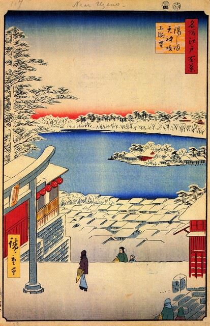 Artist: Utagawa Hiroshige - Title: Yushima Tenjin Shrine - Medium: Fine Art Giclee on Canvas - Image Size: Approximately 32 inches x 20.5 inches - Unframed on Unstretched Canvas - Biography: (1797 - 12 October 1858) Hiroshige 's print s convey the beauty of Japan and provide insight into the everyday life of its citizens during the Edo period. The appeal of his tender, lyrical landscapes was not restricted to the Japanese audience.Hiroshige 's work had a profound influence on the Impressionists and Post-Impressionists of Europe: Toulouse-Lautrec was fascinated withHiroshige 's daring diagonal compositions and inventive use of perspective, while Van Gogh literally copied two ofHiroshig's prints from the famous series, 100 Famous Views of Edo in oil paint. - The borders may not be even inHiroshig's images. Please refer to the image.