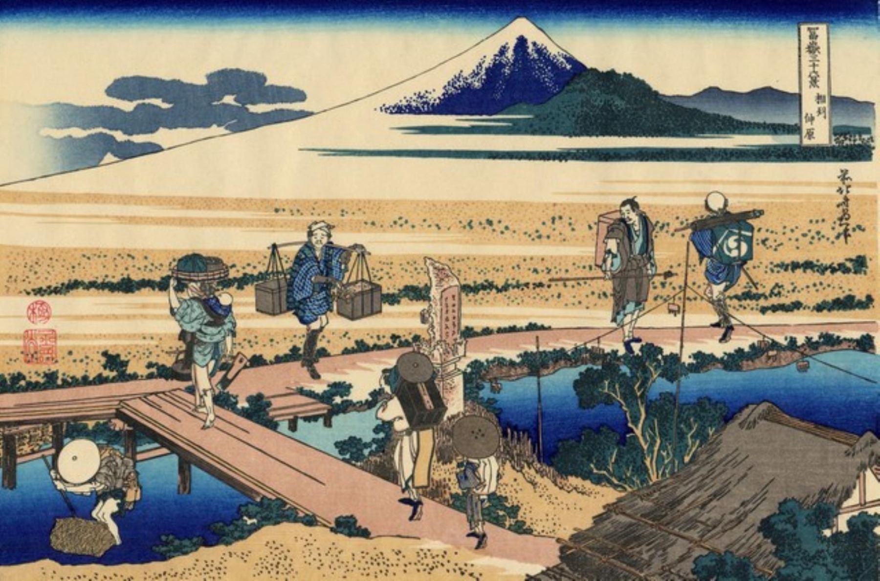 Artist: Katsushika Hokusai - Title: Nakahara in the Sagami Province - Medium: Fine Art Giclee on Canvas - Image Size: Approximately 21 inches x 32 inches - Unframed on Unstretched Canvas - Biography: ( c. 31 October 1760 - 10 May 1849), known simply as Hokusai, was a Japanese artist, ukiyo-e painter and printmaker of the Edo period. Born in Edo (now Tokyo), Hokusai is best known as author of the woodblock printseries Thirty-six Views of Mount Fuji which includes the internationally iconic print, The Great Wave off Kanagawa.