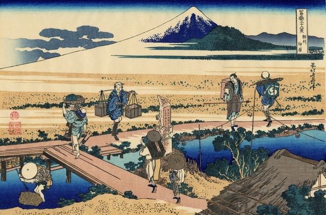 Artist: Katsushika Hokusai - Title: Nakahara in the Sagami Province - Medium: Fine Art Giclee on Canvas - Image Size: Approximately 21 inches x 32 inches - Unframed on Unstretched Canvas - Biography: ( c. 31 October 1760 - 10 May 1849), known simply as Hokusai, was a Japanese artist, ukiyo-e painter and printmaker of the Edo period. Born in Edo (now Tokyo), Hokusai is best known as author of the woodblock printseries Thirty-six Views of Mount Fuji which includes the internationally iconic print, The Great Wave off Kanagawa.