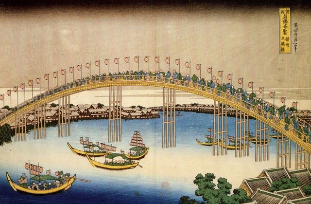 Artist: Katsushika Hokusai - Title: Tenma Bridge - Medium: Fine Art Giclee on Canvas - Image Size: Approximately 13 inches x 20 inches - Unframed on Unstretched Canvas - Biography: ( c. 31 October 1760 - 10 May 1849), known simply as Hokusai, was a Japanese artist, ukiyo-e painter and printmaker of the Edo period. Born in Edo (now Tokyo), Hokusai is best known as author of the woodblock printseries Thirty-six Views of Mount Fuji which includes the internationally iconic print, The Great Wave off Kanagawa.