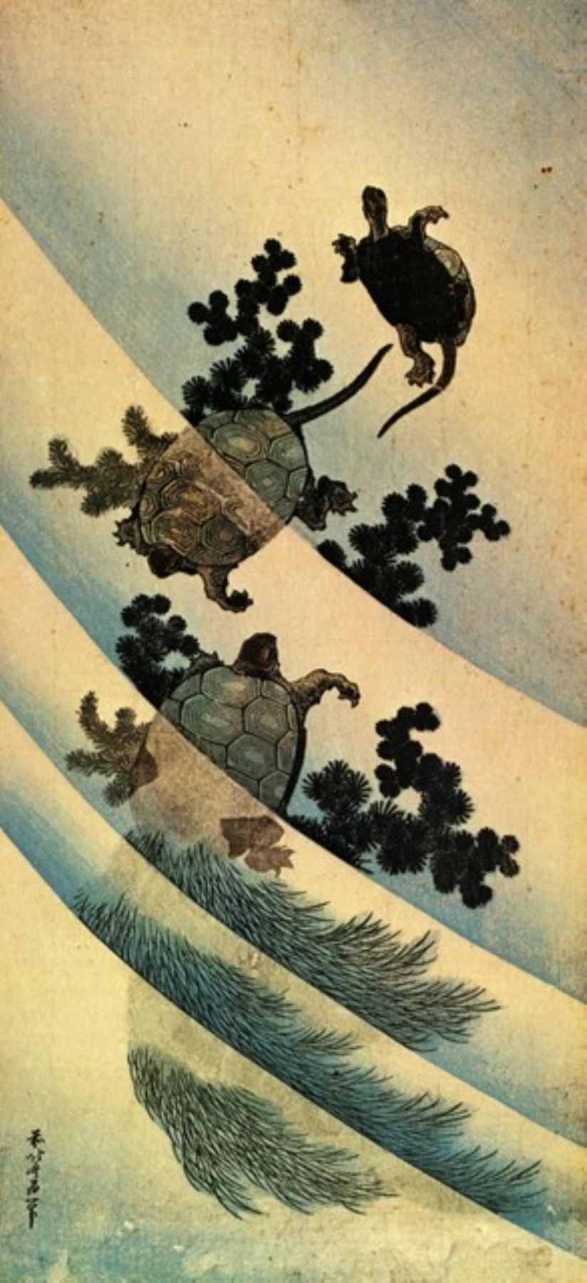 Artist: Katsushika Hokusai - Title: Turtles - Medium: Fine Art Giclee on Canvas - Image Size: Approximately 32 inches x 14.5 inches - Unframed on Unstretched Canvas - Biography: ( c. 31 October 1760 - 10 May 1849), known simply as Hokusai, was a Japanese artist, ukiyo-e painter and printmaker of the Edo period. Born in Edo (now Tokyo), Hokusai is best known as author of the woodblock printseries Thirty-six Views of Mount Fuji which includes the internationally iconic print, The Great Wave off Kanagawa.