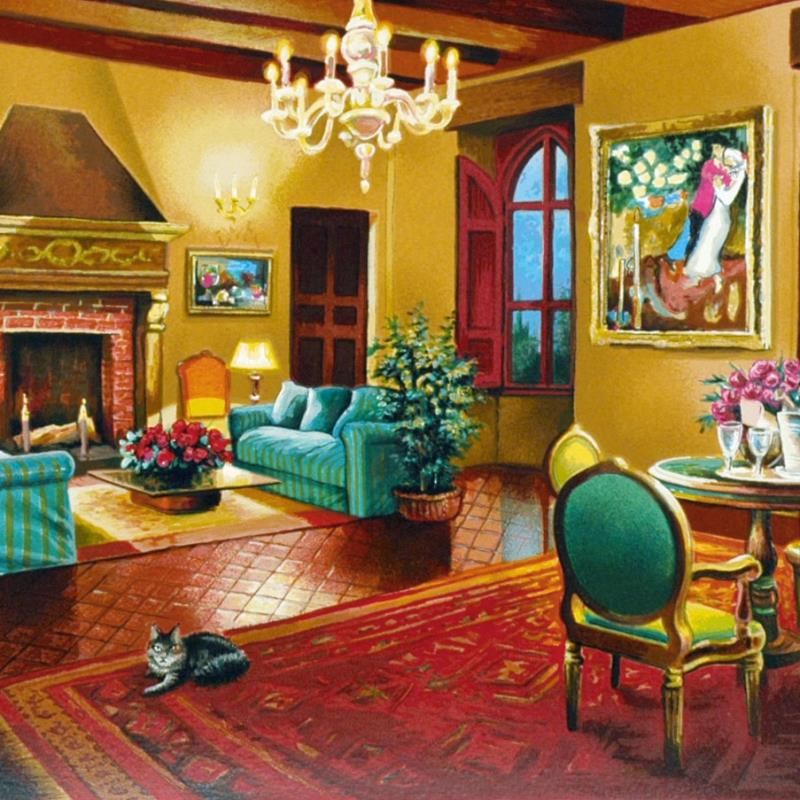 "Homage to Chagall" is a limited edition lithograph on paper by Anatoly Metlan, numbered and hand signed by the artist. Includes Certificate of Authenticity. Measures approx. 24" x 16" (with border), 22" x 14" (image).