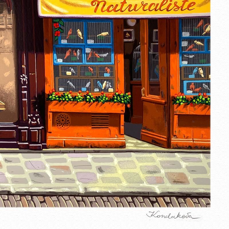 "Homage to Mucha (Sidewalks of Paris)" is a limited edition serigraph on paper by Liudmila Kondakova, hand signed by the artist. Includes Letter of Authenticity. Measures approx. 23" x 29" (border), 18" x 24" (image).