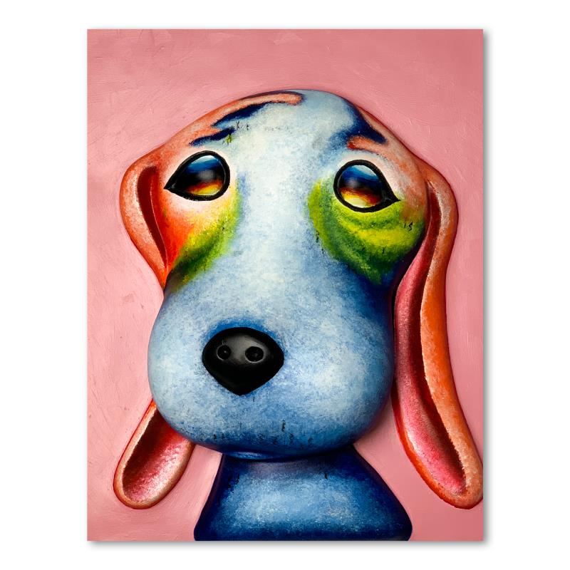"Homer (Pink)" is a hand painted limited edition, dimensional art, bas relief sculpture by Wang. This piece is numbered 9/99, is hand signed in verso, and comes with a letter of authenticity. Measures approximately 13" x 10".