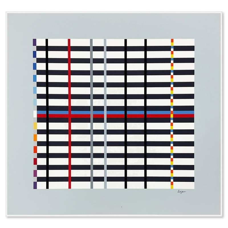 "Hommage du Mondrian (Light Blue)" is a limited edition serigraph on paper by Yaacov Agam hand signed by the artist. Includes Letter of Authenticity. Measures approx. 26.5" x 28" (image).