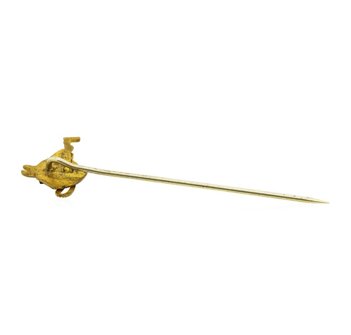 One yellow gold plated horse head motif stick pin weighing 2.1 grams,