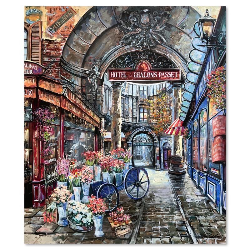 "Hotel De Chalons Passet" is a hand embellished limited edition publisher's proof on stretched canvas by Vadik Suljakov, numbered inverso 1/5 and hand signed by the artist. Includes Letter of Authenticity. Measures approx. 36" x 30" (image). There may be
