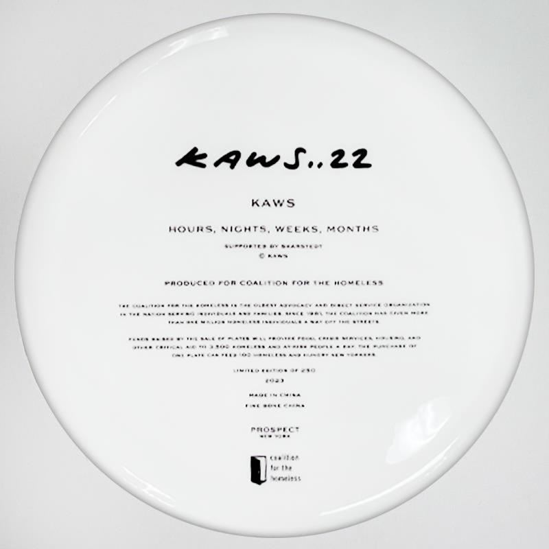 "Hours, Nights, Weeks, Months" is a limited edition plate by KAWS. This plate is custom framed and floated on linen. Includes Letter of Authenticity. Measures approx. 15.5" x 15.5" (frame), 10.5" (plate diameter).