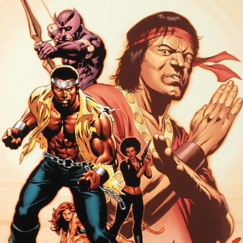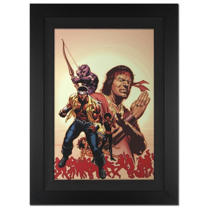 A piece of comic book history, this limited edition, from original art by Mike Perkins, depicts the characters Hawkeye, Luke Cage, and Shang Chi. Beginning with Marvel UK, Mike Perkins now regularly creates art for Spider-Man, Fantastic Four, X-Men, and Captain America. "House of M: Avengers #2" is an extremely limited edition giclee on canvas by Mike Perkins presented by Marvel Comics, hand signed by the great Stan Lee and numbered out of only 10! This piece was custom framed and ready to hang. Includes Certificate of Authenticity! Measures approx. 25" x 34" (with frame), 18" x 27" (image).