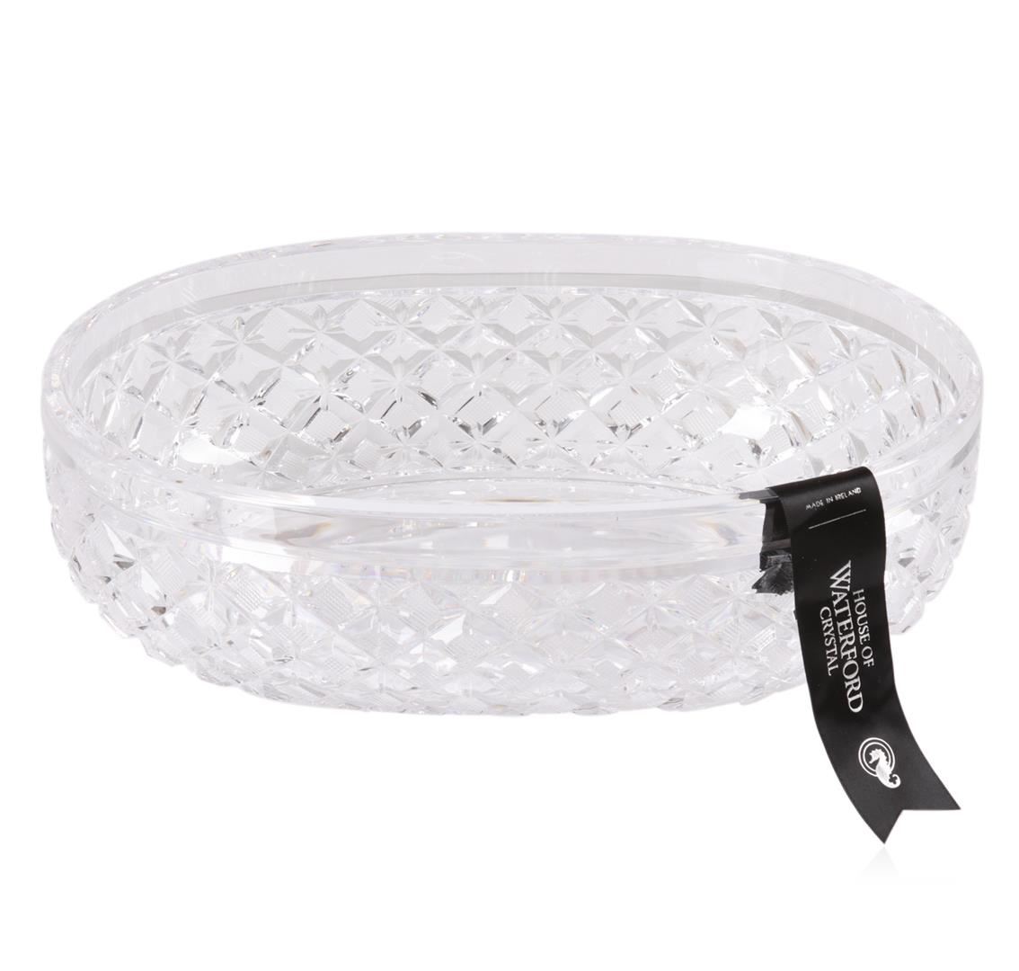 NIB House of Waterford Crystal Waterford Lace 14 Inch Oval Bowl. This beautiful bowl comes in the original Waterford box and packaging.