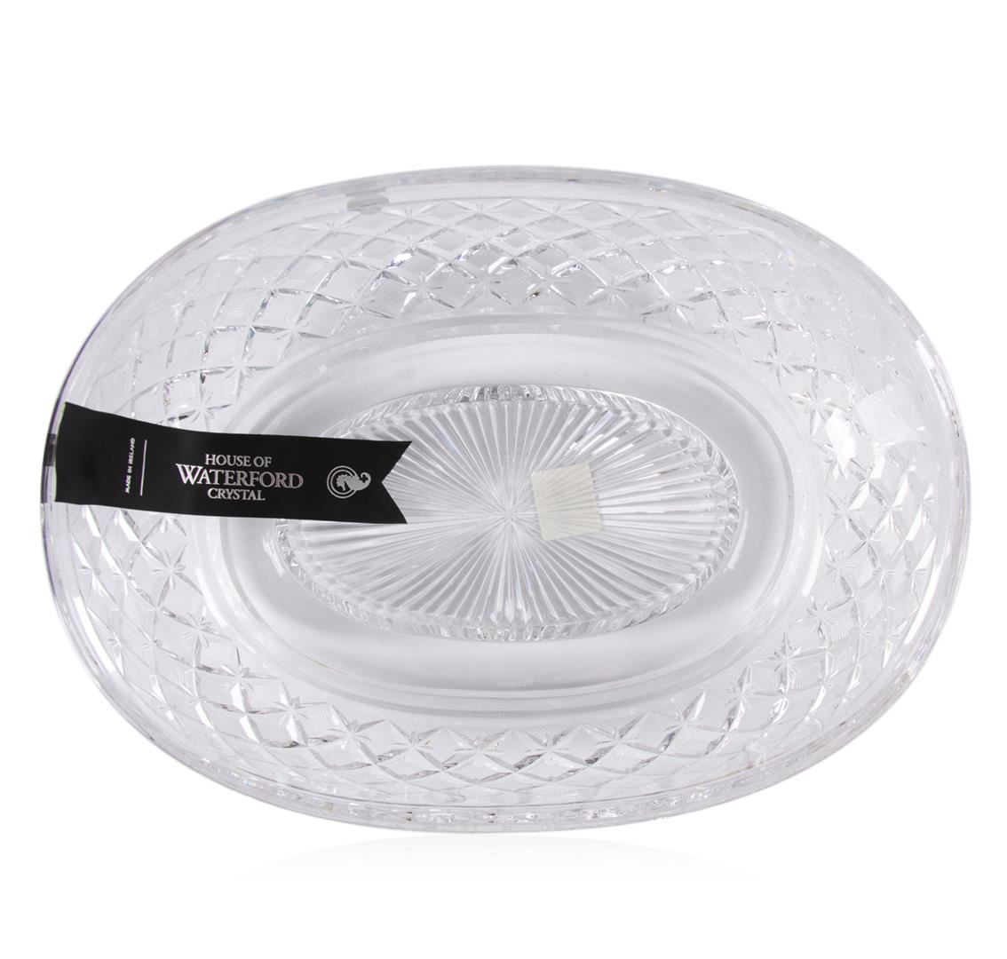 NIB House of Waterford Crystal Waterford Lace 14 Inch Oval Bowl. This beautiful bowl comes in the original Waterford box and packaging.
