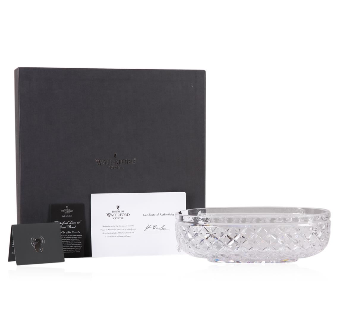 NIB House of Waterford Crystal Waterford Lace 14 Inch Oval Bowl. This beautiful bowl comes in the original Waterford box and packaging.