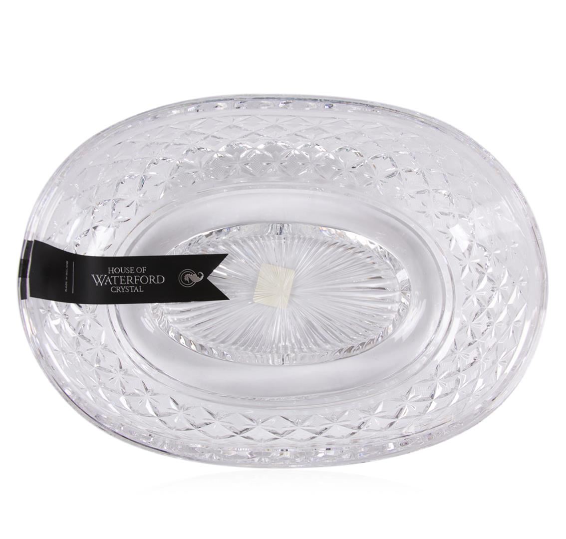 NIB House of Waterford Crystal Waterford Lace 14 Inch Oval Bowl. This beautiful bowl comes in the original Waterford box and packaging.