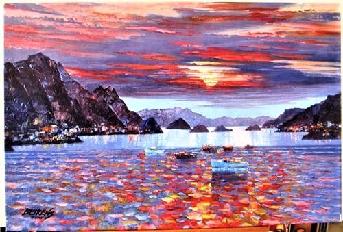 Howard Behrens "AMALFI SUNSET" Heavily Embellished Hand Signed and Numbered LE Stretched Canvas Giclee, Publisher's Certificate of Authenticity Dimensions: 24 x 36 inches (Note: edition number received may differ from photo)