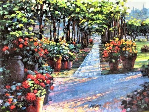 Howard Behrens "SIENA ARBOR" Heavily Embellished Hand Signed and Numbered LE Stretched Canvas Giclee, Publisher's Certificate of Authenticity Dimensions: 24 x 32 inches (Note: edition number received may differ from photo)