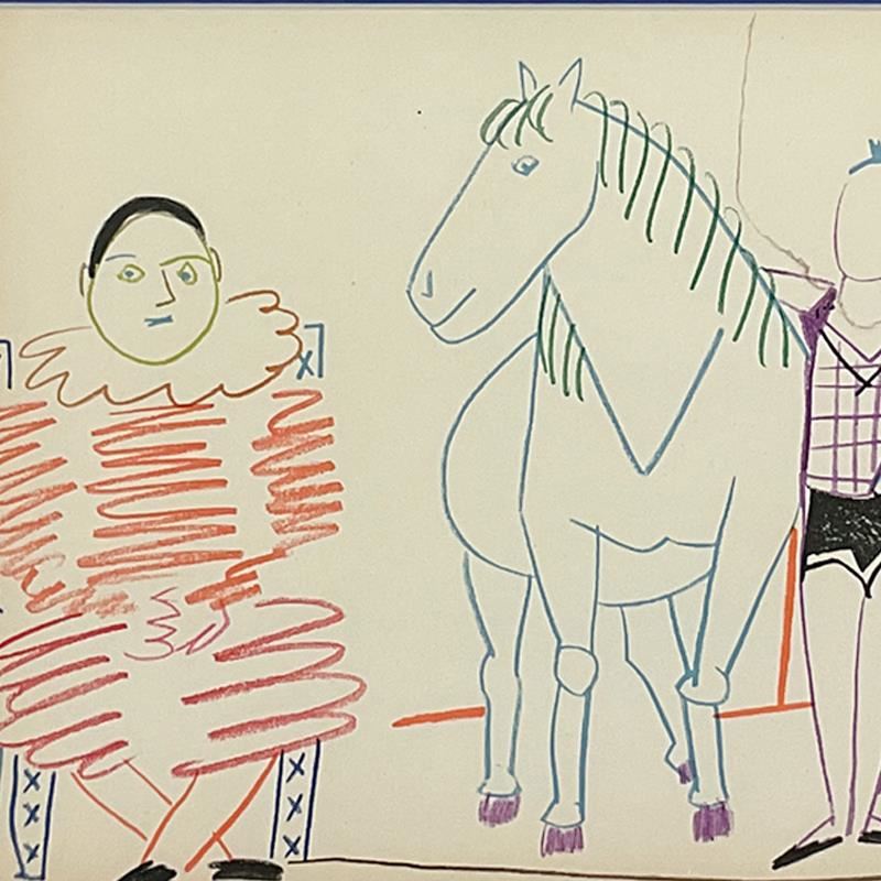 Human Comedy (30.1.54.III) By Picasso (1881-1973). "Human Comedy (30.1.54.III)" is a lithograph on paper by Picasso (1881-1973). This piece comes custom framed. Includes Letter of Authenticity. Measures approx. 22.5" x 19"(frame), 12.5" x 9" (image). There are some minor nicks along the left-frame panel.