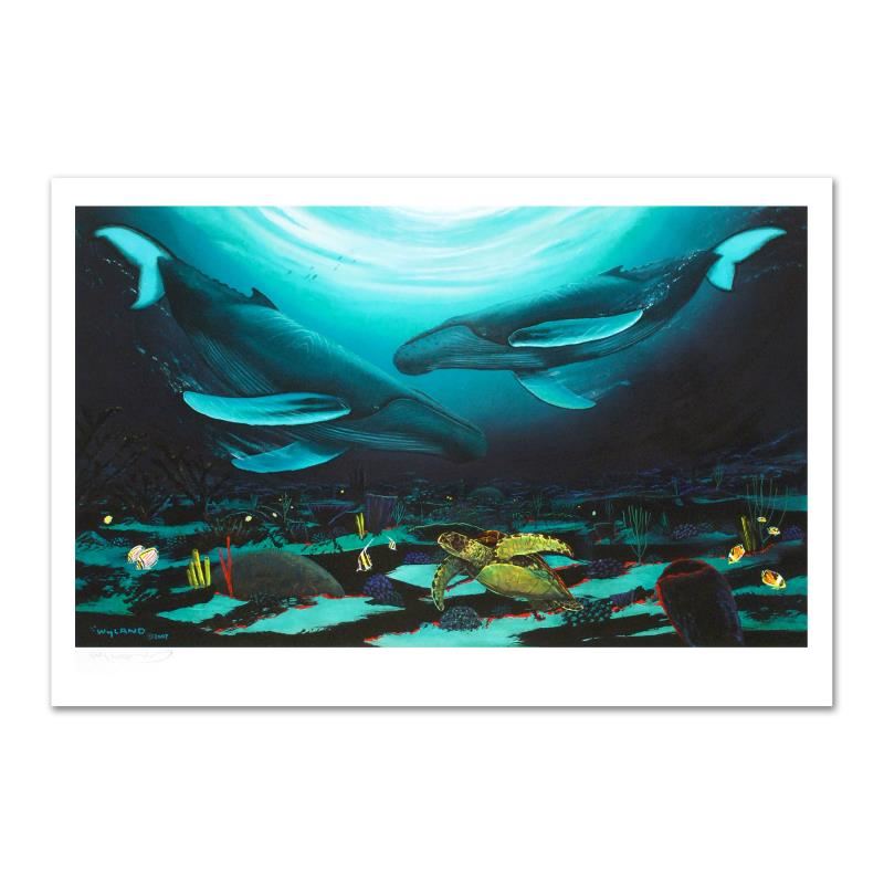 "Humpback Dance" is a limited edition giclee on canvas, numbered and hand signed by Wyland! Includes Certificate of Authenticity! Measures approx. 35" x 24" (image).