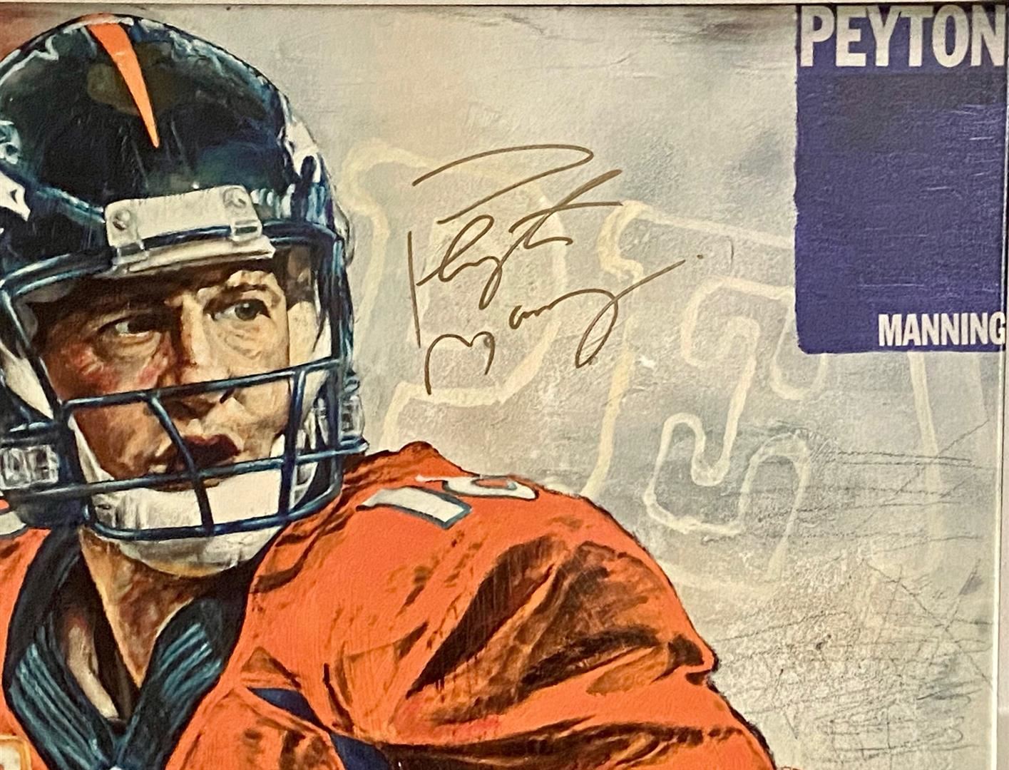 A stretched giclee on canvas, hand signed by the Peyton Manning and by artist Stephen Holland 25x42" with Authen. Certificate