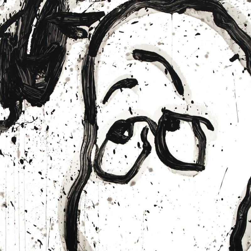Master Artist Tom Everhart is the protege of famed "Peanuts" creator, Charles M. Schulz (1922-2000). As the only artist in the world granted the rights to draw the "Peanuts" characters in his own work, Everhart creates vibrant, extremely collectible rainbow masterpieces featuring Snoopy, Woodstock and the gang. "I Can't Believe my Ears, Darling" is a limited edition hand pulled original lithograph on museum quality deckle-edge paper, numbered and hand signed by Everhart! Includes certificate of authenticity! Measures approx. 29" x 38" (with border); 25" x 33" (image). This artwork was created on one of two rare antique Marinoni Voirin lithograph presses that date back to the 1800's, and are reputed to come from the Paris print shop used by Henri Toulouse-Lautrec. There are only 7 of these magnificent beasts left in the world: the smaller one (with a print bed size of 25" x 35"), weighs 9 tons, and the larger one weighs in at 11 tons (print bed size 31" x 47"). The significance of this is that the lithographs produced by this method are of the finest quality, using techniques that are so labor and time intensive that very few master printers know how to operate and care for these presses today. Each lithograph is created with hand-mixed colors applied one at a time - a highly trained and synchronized team must hand feed each museum-quality sheet of paper through the press numerous times in order to set the colors and impressions, while the Chromist - a trained color specialist - adjusts each color by look and feel to match the original artwork, as if mixing a potion. The result is an image with maximum pigment saturation, formed through rich layers of color that imbue the artwork with a permanency of brilliance - proven over centuries to last. In contrast, today's printers use a method more akin to a dot matrix style application, with the colors all premixed and sprayed onto a sheet in a uniform layer, resulting in a much less saturated image that is susceptible to fading and imperfect color reproduction. This is one of the final Tom Everhart editions to be printed using this very special technique.