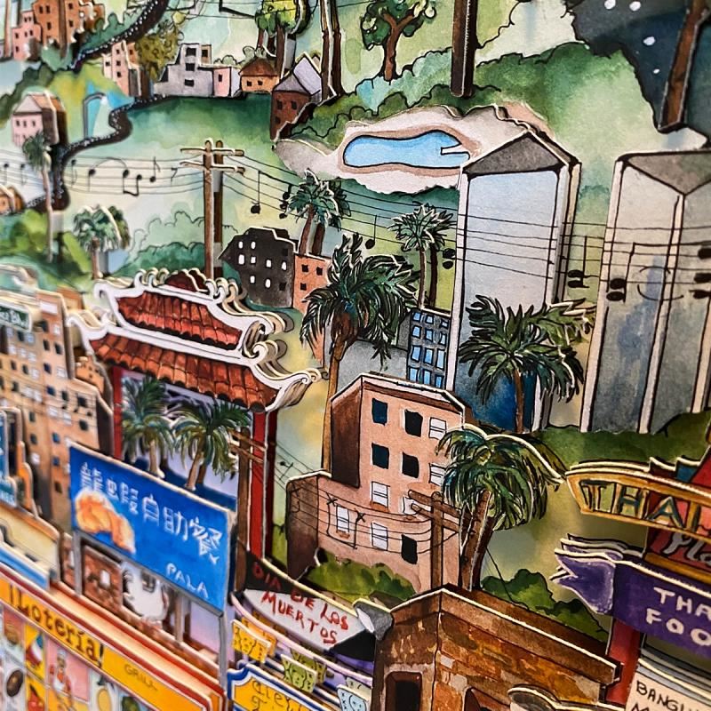 "I Love LA" is a limited edition 3D construct on paper by Linnea Pergola. The piece is numbered and hand signed by the artist. Includes letter of authenticity. Measures approximately 19" x 24" (sheet).