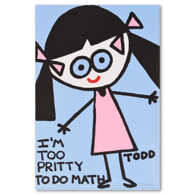 "I'm Pritty" is an original acrylic painting on gallery wrapped canvas by Todd Goldman, hand signed by the artist. Includes Letter of Authenticity. Measures approx. 24" x 36" (image). Due to the way this piece was stored there may be minor wear or signs of age (such as wear on the corners) but the piece is in overall good condition.