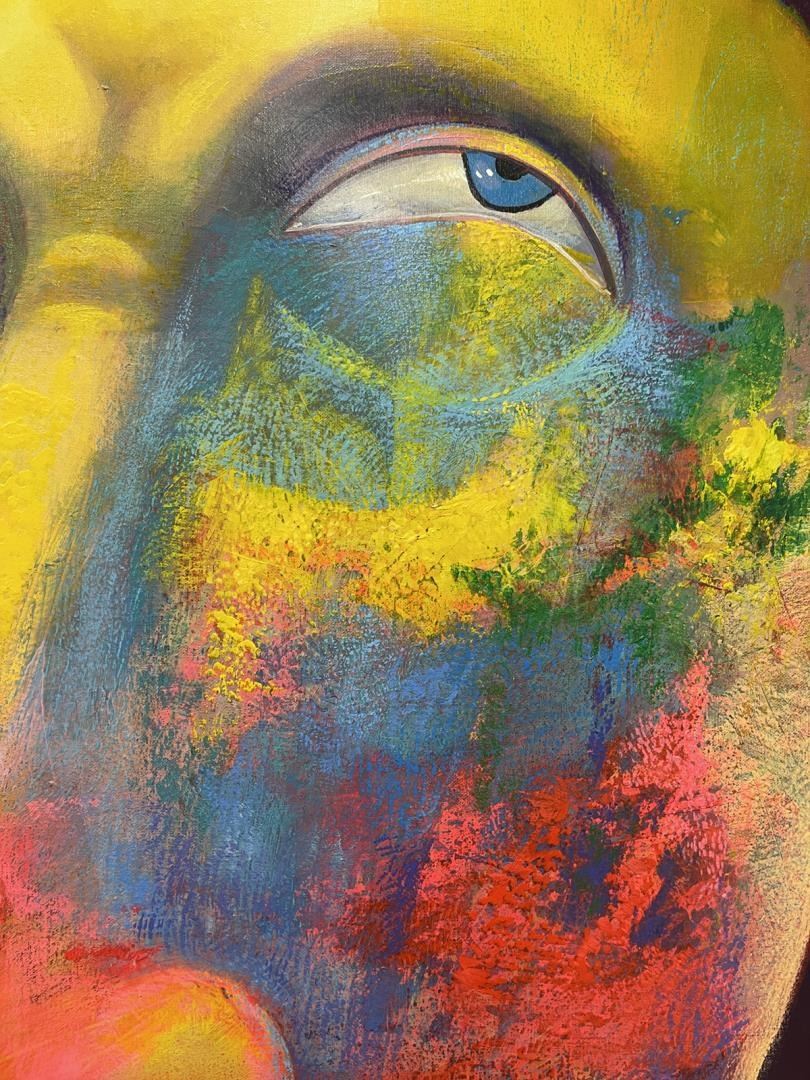 Fascinating original acrylic on 36x48" canvas signed by Barr. Artwork comes with a certificate of authenticity. This artwork comes framed.