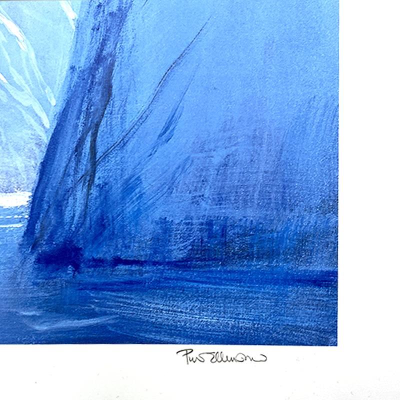 Ice Cathedral by Peter Ellenshaw (1913-2007). "Ice Cathedral" is a limited edition lithograph on paper by Peter Ellenshaw (1913-2007), numbered and hand signed by the artist. Includes Letter of Authenticity. Measures approx. 37" x 26.5" (border), 32.5" x 21.5" (image). ** Please note: there are noticeable signs of moisture damage on the paper (wavy paper and/or discoloration spotting). **