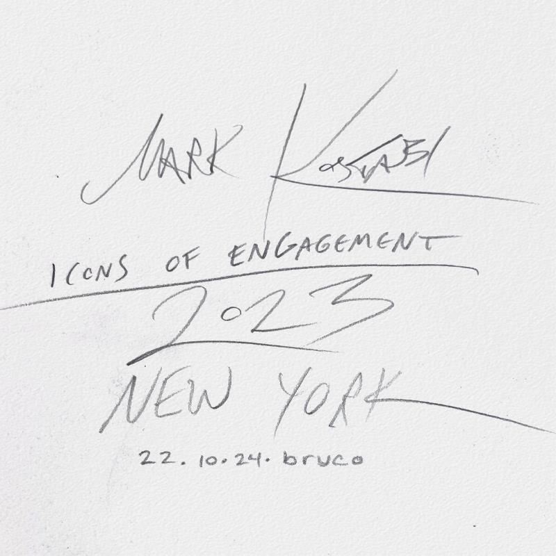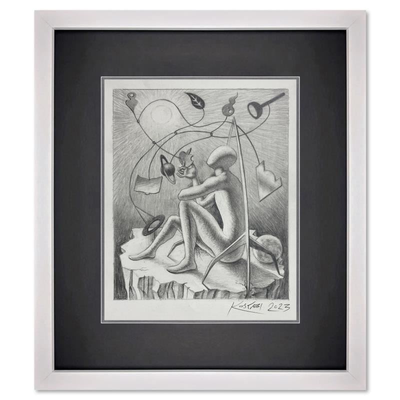 "Icons of Engagement - New York" is an original drawing on paper by Mark Kostabi, hand signed by the artist. This piece comes custom framed. Includes Certificate of Authenticity. Measures approx. 15" x 13" (frame), 9" x 7" (image).