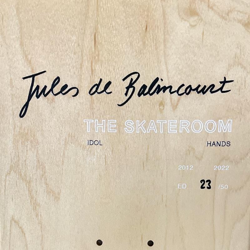 "Idol Hands" is a limited edition skateboard triptych by Jules de Balincourt numbered and hand signed by the artist inverso. This triptych comes custom framed. Includes Letter of Authenticity. Measures approx. 30" x 37" x 3" (frame) 24" x 32" (skateboards).
