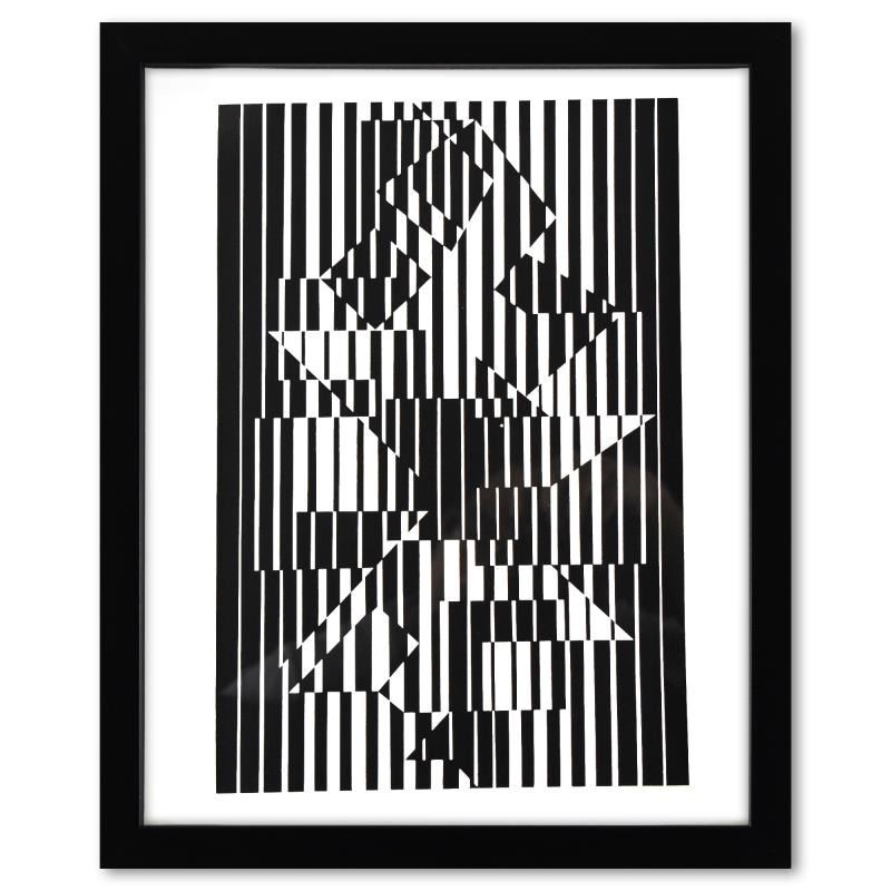 "Ilava de la serie Lineaires" is a heliogravure print on paper, published in 1973, by Victor Vasarely (1908-1997). This piece comes custom framed, with a letter of authenticity and with a 1976 Vasarely paperback. Measures approx. 12.5" x 15" (frame), 10" x 13" (image).