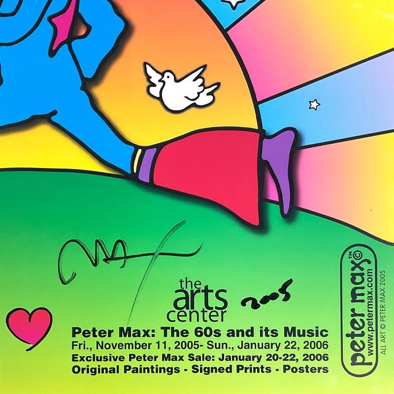 "Imagine" is a poster on paper by Peter Max, hand signed by the artist. Includes Letter of Authenticity. Measures approx. 24" x 18" (image).
