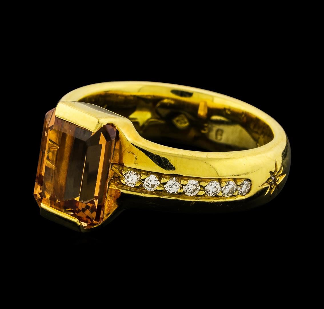 One ring featuring: 18KT Yellow Gold containing Imperial Topaz and Diamonds. Total Weight of Ring: 8.2 grams.