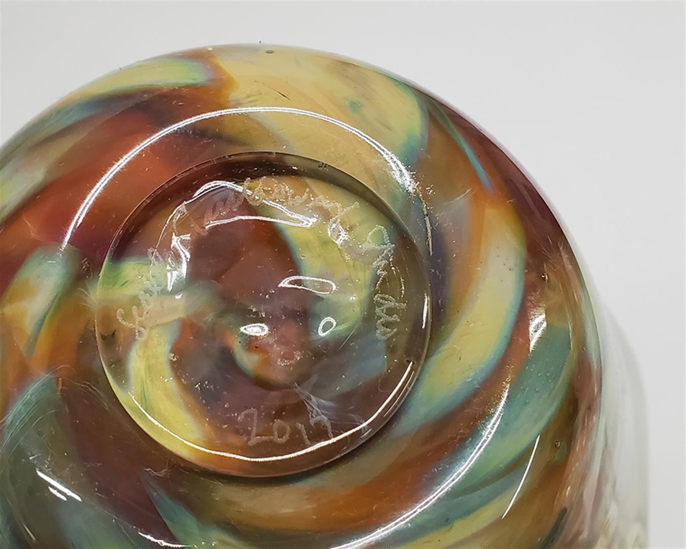 Signed in 2017, this piece measures 9.5" tall by 7" wide and 7.5" deep.