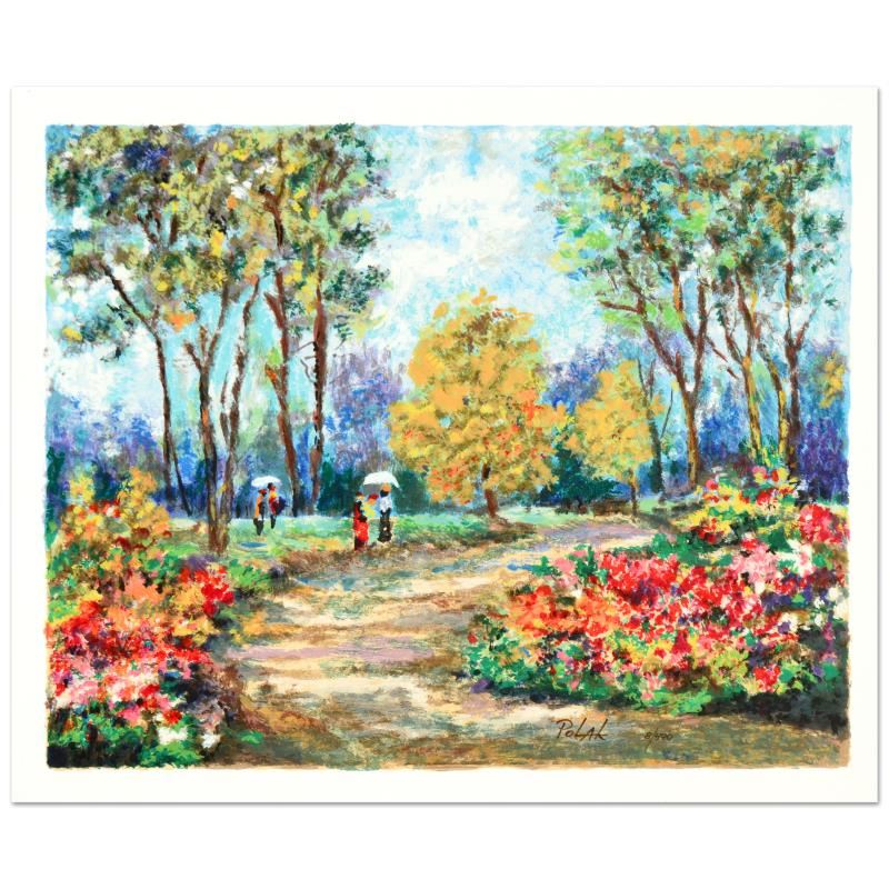 "In the Park" is a limited edition serigraph on paper, numbered and hand signed by Dimitri Polak (1922-2008). Includes Certificate of Authenticity. Measures approx. 16.5" x 13.5" (border), 15" x 12" (image).