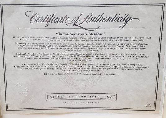 A Vintage Disney limited edition, signed & numbered on unframed canvas 14x14" unframed, art by Stan Spohn. with COA