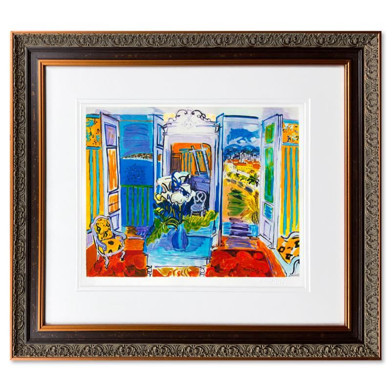"Interieur A La Fenetre Ouverte" is a framed limited edition lithograph on paper by Raoul Dufy. Printed by Atelier Tete a Tete in Paris and authorized by Dufy owners of rights and ADAGP Paris , the piece is plate signed and comes with a certificate of authenticity. Measures approximately 30" x 28" (frame), 19.5" x 24" (image).