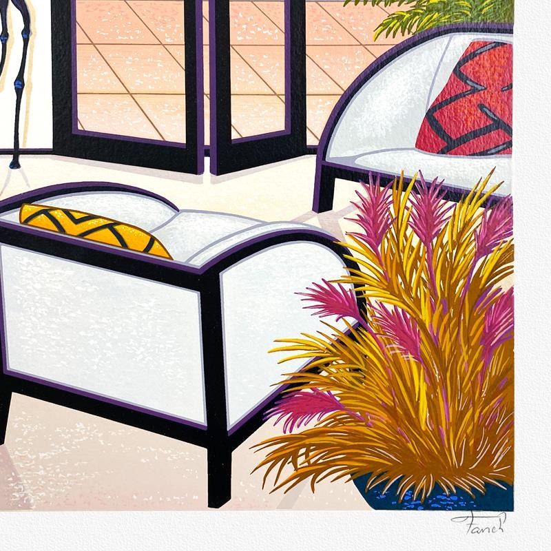 "Interior Dalinean" is a limited edition serigraph on paper by Fanch, AP numbered and hand signed by the artist. Includes Letter of Authenticity. Measures approx. 39.5" x 30" (border), 37" x 27" (image). This proof came from Fanch Ledan's personal collection. It may have some slight imperfections in the image and border, but it's overall condition was inspected and approved by him.