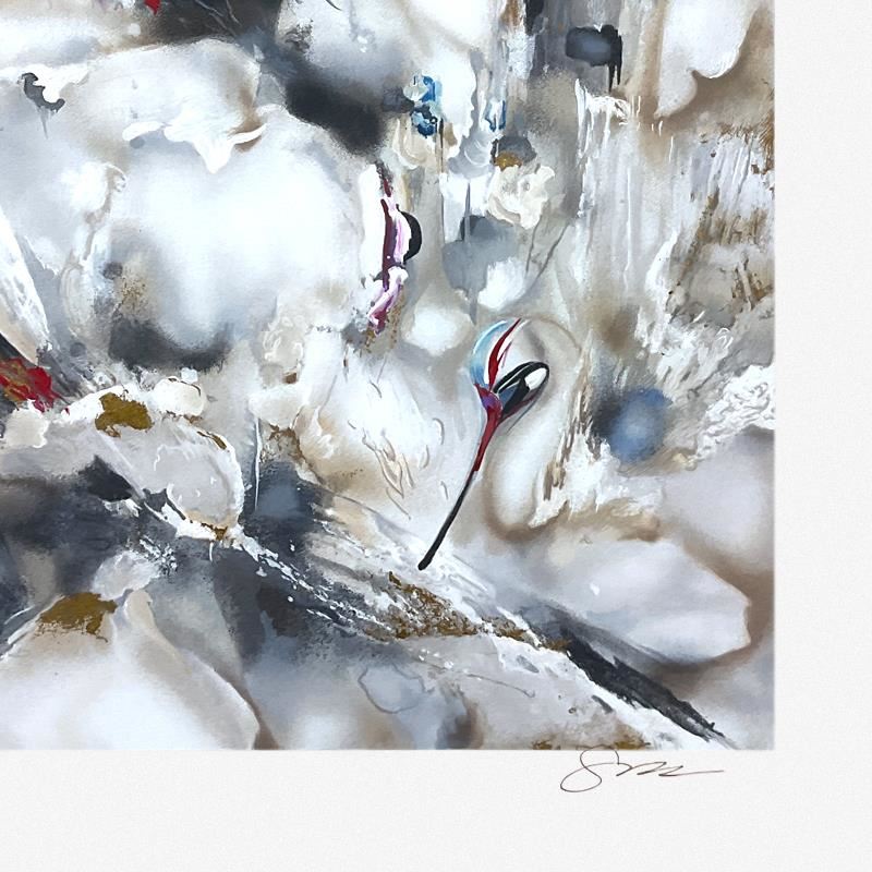 "Interlude" is a limited edition printer's proof serigraph on paper by Suzanne Marie, numbered 1/15 and hand signed by the artist. Includes Letter of Authenticity. Measures approx. 28.5" x 22" (border), 24" x 18" (image).