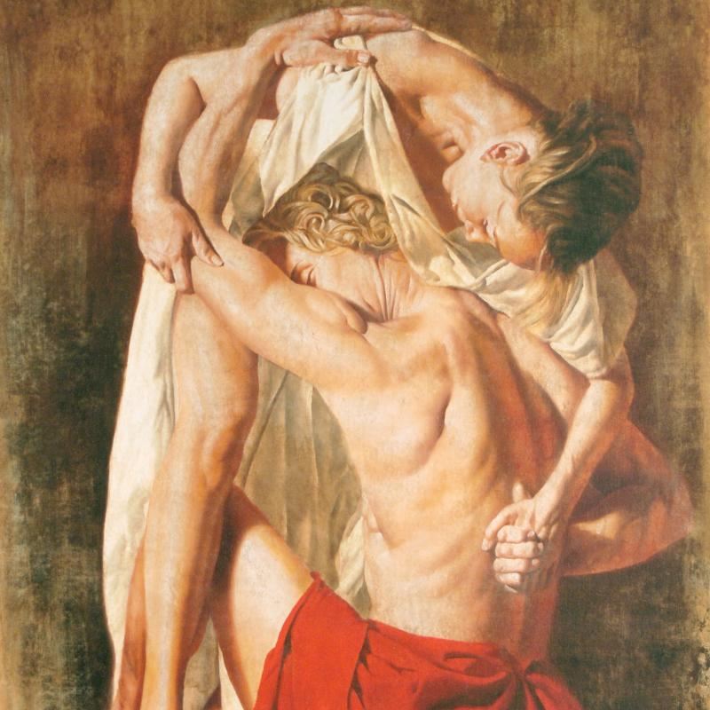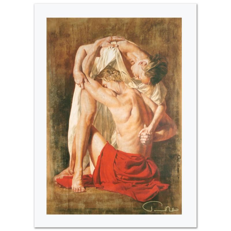 With a style that is reminiscent of the frescoes of Michelangelo and Caravaggio, Tomasz Rut creates breathtaking works of art that capture the beauty of the human form. "Intimita" is a limited edition giclee on canvas, numbered and hand signed by Rut. Includes Certificate of Authenticity! Measure approx. 22" x 32" (image).