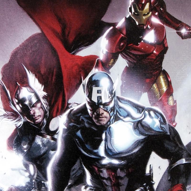 A piece of comic book history, this limited edition, from original art by Gabriele Dell'Otto, depicts the heroic Captain America, Iron Man, and Thor. In 1998 Dell'Otto started collaborating with the European division of Marvel Comics, producing covers, posters and lithographies for Italy, France and Germany. In 2002, his work was shown to the editor-in-chief of Marvel Comics, who entrusted to him with the art for the Secret War mini-series. "Invasion #6" is a limited edition numbered giclee on stretched canvas by Gabriele Dell'Otto presented by Marvel Comics. This piece comes gallery wrapped. Includes Certificate of Authenticity! Measures approx. 18" x 27" (image); 1.5" (depth).