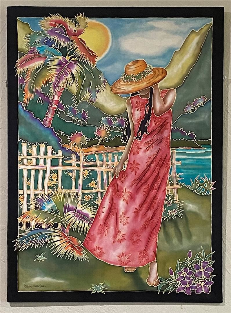"Island Breeze" is an original on silk by Hawaii's Susan Patricia. It is 19" x 28"Unframed