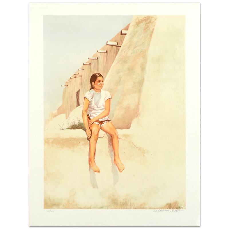 "Isleta Indian Girl" is a limited edition lithograph on paper by William Nelson, numbered and hand signed by the artist! Measures approx. 22" x 29" (with border); 18" x 25" (image).