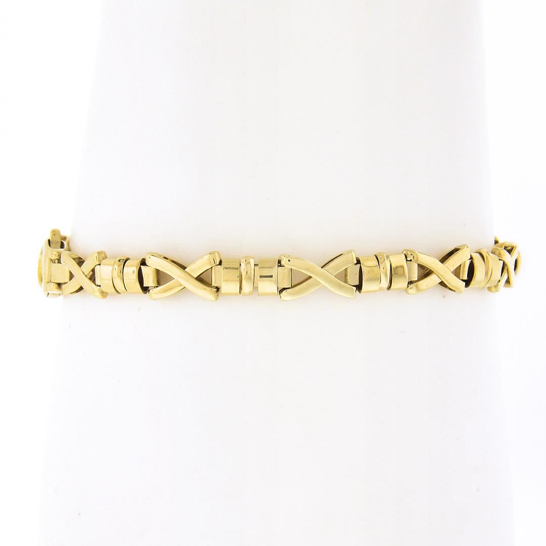 Italian 14K Yellow Gold 6.75  Polished  X  & Bar Link Line Stackable Bracelet