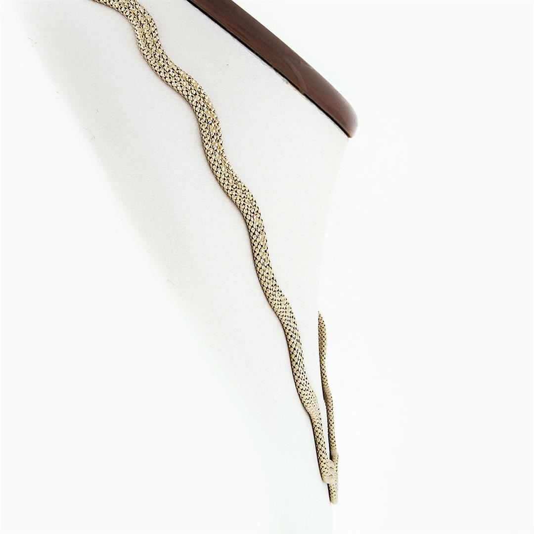 A solid 14k yellow gold 3 row wavy chain link necklace. 17.5 inch popcron link chain, 20.20 grams total weight.