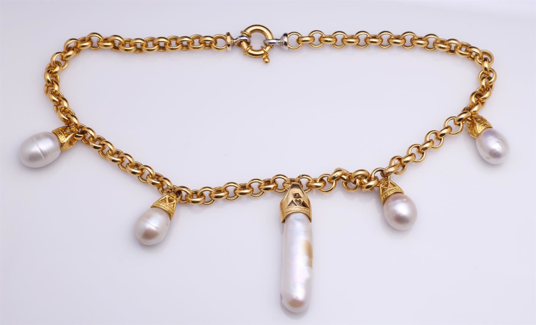 Italian 18K Gold Pearl & Diamond Designer Necklace Total weight of necklace is 46.5 gm. Estimated retail value $7,680.