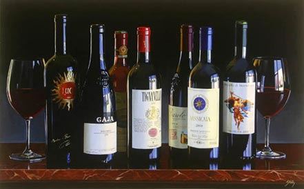A Thomas Stiltz large 30x48" signed limited edition stretched giclee on canvas celebrates some great Italian wines. COA.