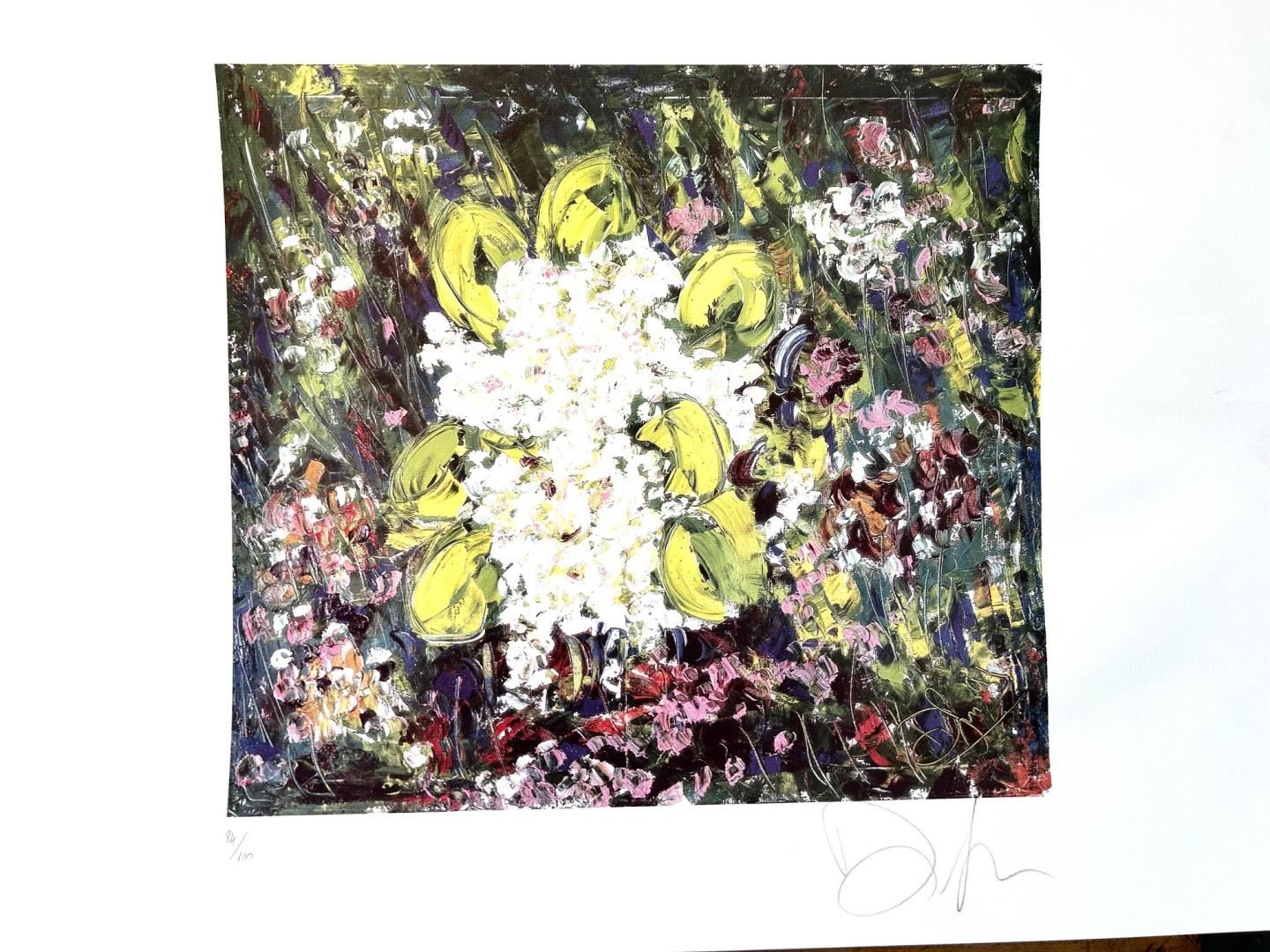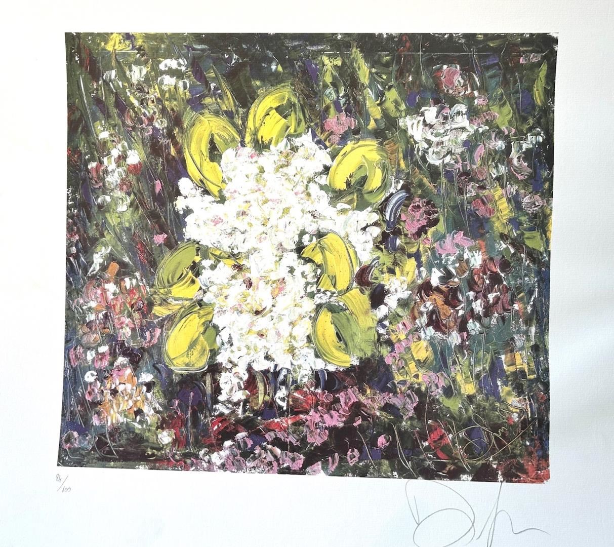 A lovely floral by Italian artist DiGiacomo ,hand signed & numbered 84/100 serigraph on 19.25x27.25" paper , Image size 14x15.75"